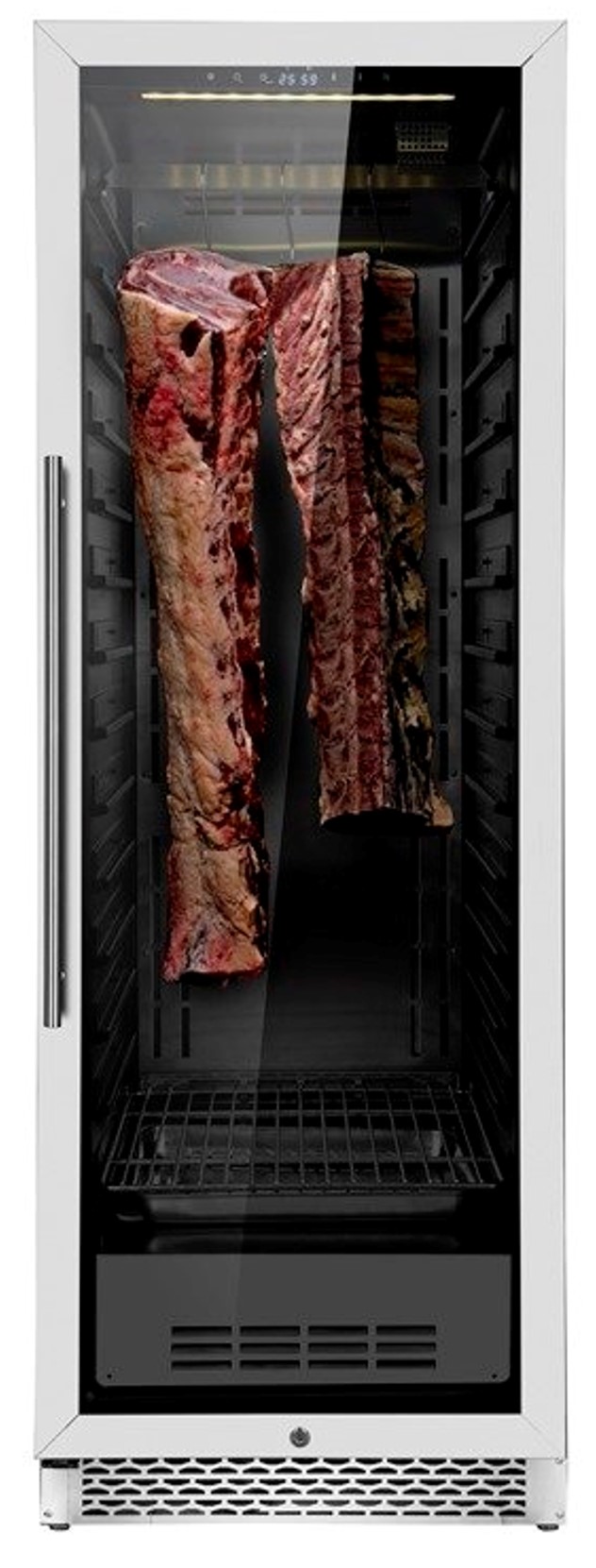 Malá kompaktní zrárna, velikosti podstolové lednice, ideální pro domácí použití, nebo restaurace, které začínají experimentovat se zráním masa - stařením masa. Plně vybavená profi lednice určená pro zrání masa. Digitální nastavení teploty i vlhkosti, čas si řešíte pomocí vlastního kalendáře.. to jsou tři hodnoty, které potřebujete pro přípravu Vašeho nejlepšího steaku jaký jste kdy ochutnali. Kapacita lednice 10-15kg